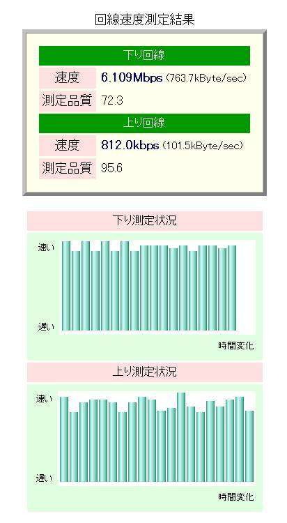 ※速度計測...他にも4つほどとってみました。 (03.5.31) 「NTTフレッツADSL 12Mbpsの平均速度は2.8Mbpsなので速い方ですが、光ファイバならさらに5倍速くなります。」 って、ほんとかな...? 20M〜30Mbps 出るんだったら、大いに期待したいんですけど。 |