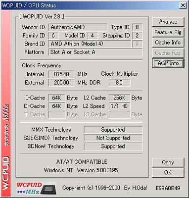 Processor AMD Athlon 787.37MHz[AuthenticAMD family 6 model 1 step 2]