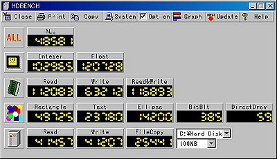 懐かしいHDBENCH(右)のスコアは大して気にもならない(...し、大した負荷もかかってない)けれど、HDDのFileCopyの値がXPの時代とは桁が違っている。BenchProgramそのものがどっかでたまげてるのかも知れない。(^^ゞ
