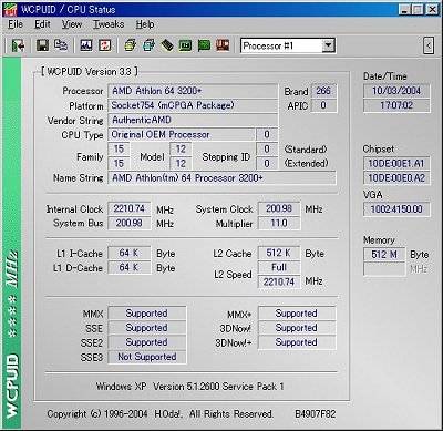 環境は、K8N Neo FSR 、Athlon64
