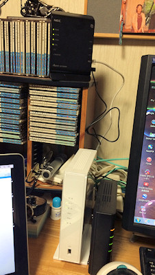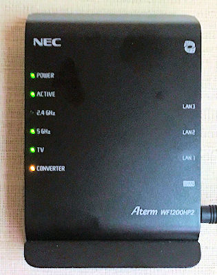 家の中でのWi-Fi 環境は、特に問題もなく快適に使えているのでしたが、1階東側のお部屋では無線の通りが悪く、この際、中継機を挟んでみることに。親機として使用している Aterm WF 1200HPの置かれているのが、PCのある西側の部屋なこともあり、2階ではほぼストレスなく通っているものの、同じ階の東側(西側部屋→玄関→リビング→廊下→東側部屋)だとちょっと距離と障害があったのかも。 で、Wi-Fi 中継機として今回入れたのが、親機と同じものがなく同シリーズな AtermWF1200HP2 。(左) 前にWi-Fi ルータをAterm にしてから、いつの間にか2年半も経ってたのでした。 HPもHP2も、調べたところ親機、子機、中継機としての使用可ということでの導入。設定も特にはまることもなく、2台並べて「らくらくスタート」ボタンなど弄ってるうちに完了。 (*^_^*) |