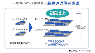 下のが、今回の Aterm WF 1200HP の SPEC概要。おまけ機能無しで(お値段手頃な)いま旬の 11ac対応 。 |