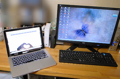 Mac と Windows 、こんな具合で並べて使ってます。 |