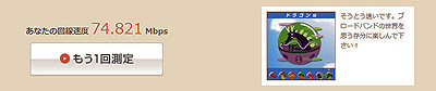 74.821Mbps のスコア。「そうとう速いです....」のコメント付きで (^^ゞ |