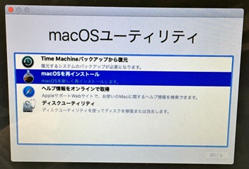 流石に少々疲れたのか、近頃動作が遅かったり変な動きをしたりで嫌な感じだったところ、フリーズが連発、ついに自力で立てなくなってしまった。(*_*) ヘルプやコミュニティを眺めたり、サポートともお話ししたりして、電源→command+R の長押しでユーティリティを立ち上げる。 何とか上書きで再インストール出来ないものかとやってみたが、延々とシステム読み込みをやったあげくにダメ。 |