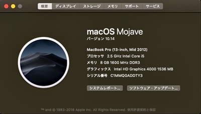 今回のMac OS の特徴は ダークモードが選択出来るようになったことがメインなんでしょうね。Windows ではずっと背景画面などは黒を基調に使ってましたが、Macではこれまでやってなかったんですね。 ダークモード、いいと思います。 今となっては古いMacbookなんですが、処理速度が遅く重くなったということもなく、新しいOSでまた新鮮な気分で走らせることができそうです。 |