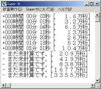 Superπの104万桁 850MHz でのタイムなので、前のスロットAthlon700@875と ほぼ似たような結果。(当たり前か) 2分30秒程度だったら、まぁ仕方ないスコアだと思う。 |