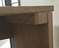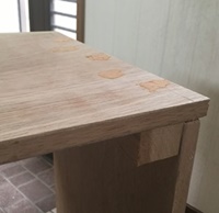 前回の反省を生かして、脚の接続部分にあて木を付けて、そこに横からと天板からとネジ止めすることで作業をし易くし、結果、多少は頑丈になったかと。