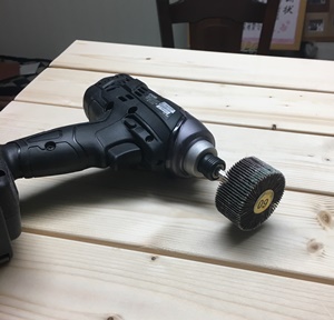 役だった道具がインパクトドライバ用の回転やすり。板の角を丸めるのに重宝した。
