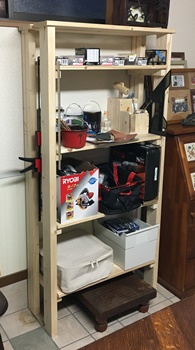 DIYやり始めて少しずつたまる道具類など整理する棚を製作。