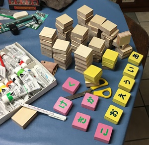 もひとつ、テーブルソーを活用してみたのが、左の「あいうえお」積み木。これはできあがるまでには少々時間がかかりそう。孫たちが喜んでくれるといいのだけど...。