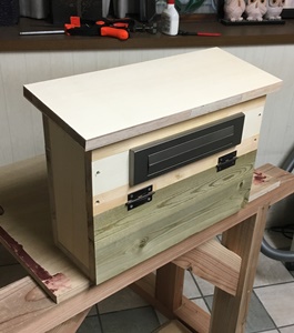 天板は10度ほどの角度をつけて、新聞や小包など入るように開け閉め出来る上蓋に。