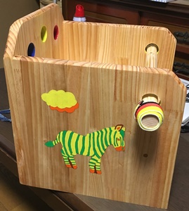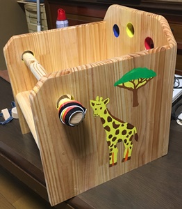 じぃさまは気が早いので、お座り出来るようになったら使ってもらえたらと、ちっちゃいイス(逃げられないイス)を作ってみた。