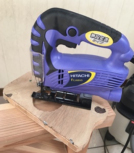 赤ちゃんチェアが組み上がってから届いたのが、左のジグソー(日立工機 FCJ65V3)。