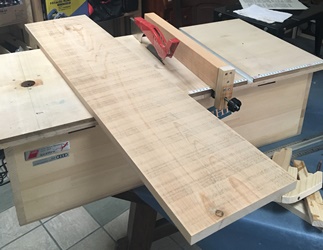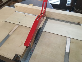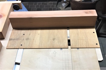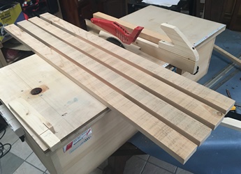 これをテーブルソー縦切りで5cm幅のを4本作る。ここがいちばん力と神経使ったところ。