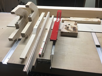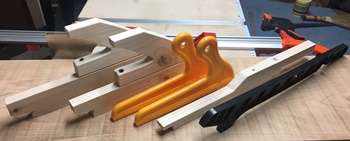 テーブルソーでの縦切り、横切りの際の、板押さえ&板押し補助棒(...もいつの間にか増えた)。