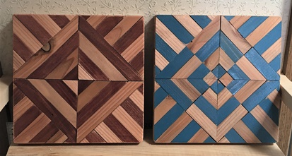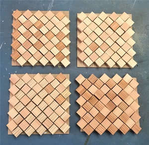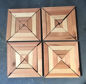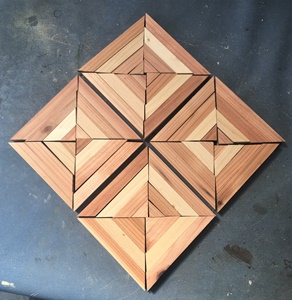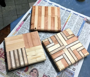 1.5cm厚、約2cm*9cmで切り揃えた端材の組合せ。1辺約18cm大のが3つ作れた。