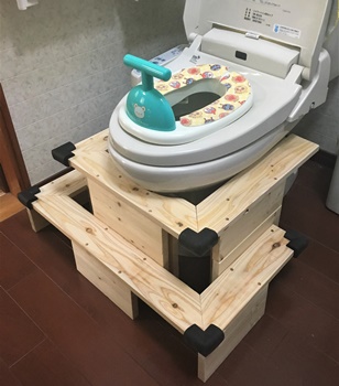 乗り降りは簡単にできるようだけど、トイレ便座をまたぐのがちっちゃい子だとなかなか難しいようです。