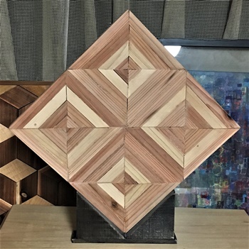 中心を三角形でなく、ひし形にして組んだら見た目の効果がもっと面白くなったかも。