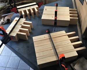 今回、天板は組接ぎじゃなく脚に渡しただけだけど、それでもキツキツで挟み込むのに結構な力がいった。