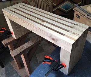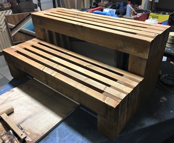 作り始めは一体型の2段ベンチ構造をイメージしていたのだけど、重さと後々の利用を考えて上段と下段は別々のセパレートにする。