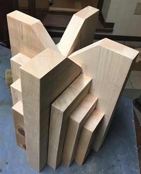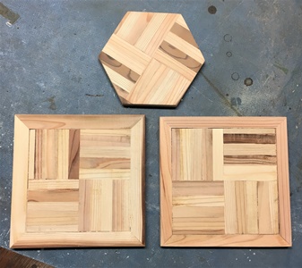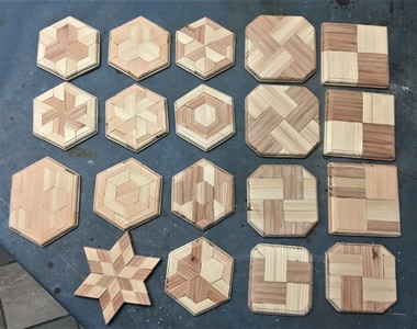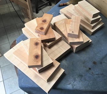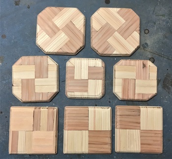 棒状の端材を15mm巾、12mm厚で何本か揃えて、今回は台形デザインのコースターを作っておく。