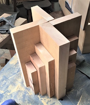 板厚は5cm、3.6cm、3cmとバラバラなのを、重ねた厚みが同じ程度になるよう組み合わせる。