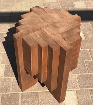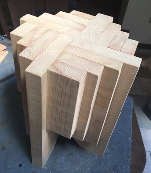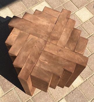 高さ40cm、座面対角の長さ33cmで、前のよりちょっとだけ座面が広く、重ね板は4枚で1枚少ない。