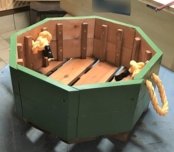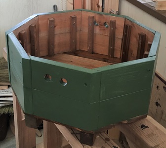内側と底はウォルナット、外側をモスグリーンで。土を入れたら結構な重さになるだろうから、
