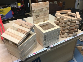 廃材、端材から作った12mm厚×15mm巾、15mm厚×20mm巾の棒が余ってて勿体ないので、蓋付きのハコなど作って遊ぶ。