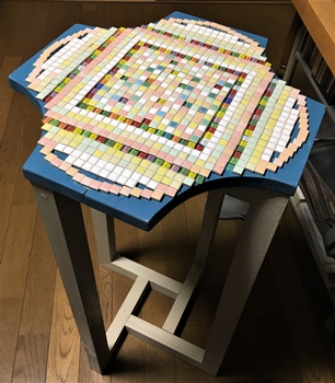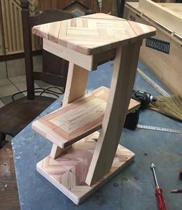 塗り分けするのには、マスキングテープは面倒な割に完全とは言えず、やはり組む前に丁寧にやっておくのがいいみたいです。 きれいでしっかりした小テーブルができた。 板のデザインが不揃いなのはご愛敬。(^^ゞ |