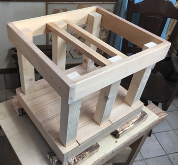 脚は6本にし、端材の棒を中程に補強で渡しておく。