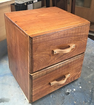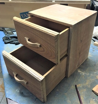 底板、裏板もすべてケヤキ材でまとめて、総ケヤキの抽斗完成。(把手だけは買ってきた。)