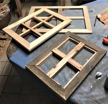 枠は額縁づくり、中の十文字は相欠きで組んでみる。