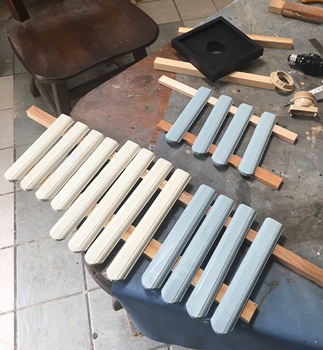 色はブルーグレイに黒をちょっと混ぜたものと、黒にウォルナットを混ぜてみたもの。