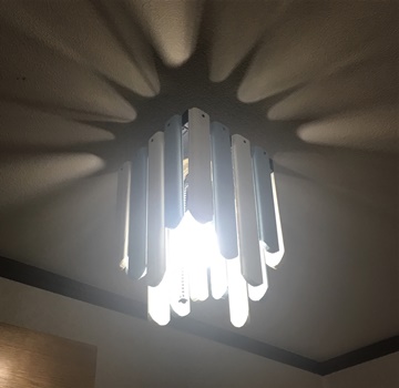 ダウンライト、明るさはそこそこ十分だけど、天井の影模様がきれいで面白い。