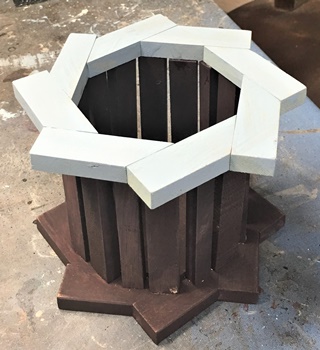 (左は)前に六角形のリングから作ったことがあったけど、45°カットの組合せで八角形のリング小物入れ。