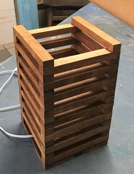 | 行燈のようなものを作るつもりはなかったのでしたが、いつの間にかこうなった。(^^ゞ スイッチ付きの国民ソケットとLED電球が1個余ってたので、使っておこうと。 この製作は、ソケットを固定するのにあれこれ考えて一苦労。あとは一気に成形。 |
