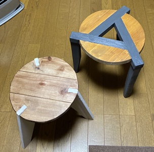 | 左がニスだけ、右が浸透性のオイルステンで仕上げたもの。 油性塗料はあまり使ってこなかったですが、ニスだけにしといた方が良かったかも。 |