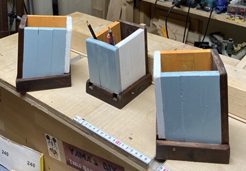 小物の数を増やすのに...、ペン立て。ネットで見た斜めの形が面白いと思って。 |