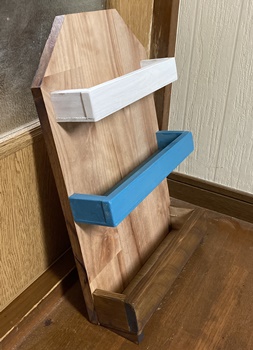 台所に調味料などを並べて入れておく簡単な棚がほしい...のリクエストで、速攻で作ったのがこれ。横25cm、縦40cm。 台所の置く場所などはざっと測って、底に角度を付ける三角形を足にしたりしてできあがったのでしたが、5cm幅だと入らないモノが結構あったのでした。(T_T) よく見てないことの顕れ...でしょうね。 またそのうちに、端材廃材活用でなく、ちゃんとしたのを作ってみたいと思ってます。m(_ _)m |