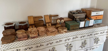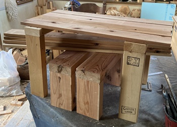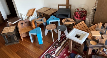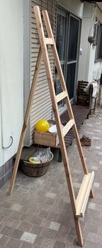 売れ残りが10数点で、7~8割方が売れた。(^_^)/~ こんなに買ってくれるとは想定外で、篤志精神の豊かないい人たちが多かったんだろうなぁ..と嬉しい驚き。 子供用のイスとかテーブル、ハコ、抽出など人気があったんだと伺いました。 数をそろえなきゃと、ざっとやったのもあっただけに、もっと丁寧にやっとくんだったとしみじみ反省。m(_ _)m 左は屋外の即席展示用に用意した渡し板など。 使わずにすんだようで、撤去してすぐに解体。 |