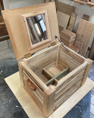 またまた..etc なのですが、どれがメインとも言えないものばかりですので。 <その1> 玉手?箱 組み接ぎでハコ囲い、内蝶番で蓋の開け閉め、額囲み蓋の中の厚みを変えてみたこと、 などなどが工夫してみたところ。玉手?箱...って名前付けたけど、煙も何も出てこないです。m(_ _)m |