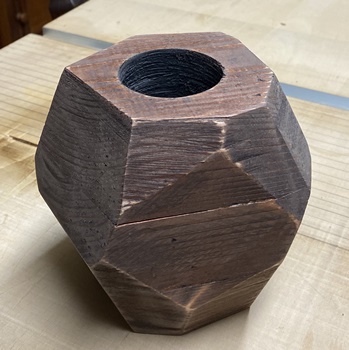 面白い、いい感じに仕上がった。 丸みはトリマー(ぼうず面)とディスクグラインダーで。 塗料(ウォルナット)はたっぷり染みこんだ。 |