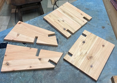 | [その3] 相欠きで、釘ネジ使わずにやってみようとした新しいデザイン。 |