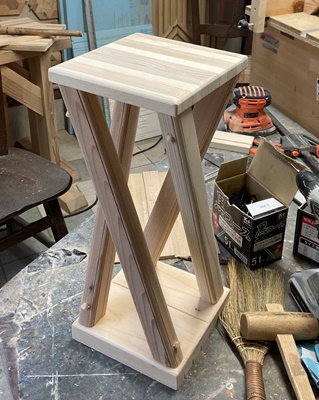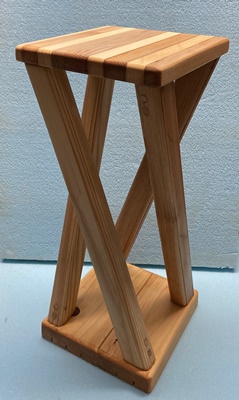 ねじれ小卓。 リクエストがあって、手持ち材で速攻製作。 高さを45cmで押さえるのに、斜めに支える脚の長さを計算するのに、三平方の定理を思い出すことになった。(^^;) 天板と底板が19cm角のツイストテーブルで、すっきりとまとまった。 どうやら上に洒落た扇風機を置くのに入り用としてくれたらしい。m(_ _)m |