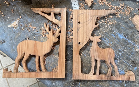 飾りに透かし彫りの鹿を置いたブックスタンドを作ってみた。 |
