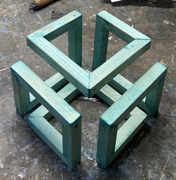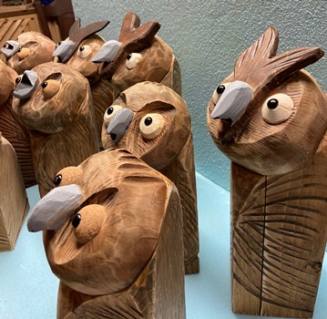 もらってきた廃材の、12cm角と10.5cm角の角材が28cm長から18cm長とたくさんあって、 お友達から「フクロウ作って...」のリクエストもあったことから、今回は立体フクロウに初挑戦。 |