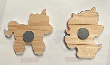 孫ムスメたちから、なぜか「ユニコーンつくって!」のリクエストがあったのを思い出し、 速攻で1個ずつ作ってあげた切り出しユニコーン。1cm厚のハメ板端材を材料に。 長いところで10cm足らずの小さい切り抜きなので、裏に磁石を付けてぺたぺた遊びに...。(^^ゞ |