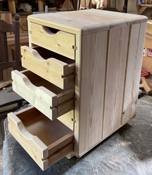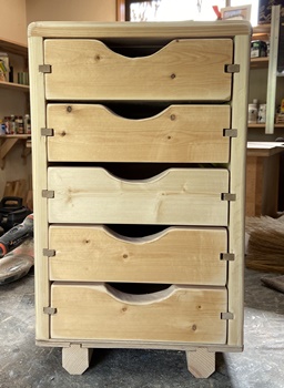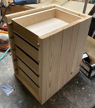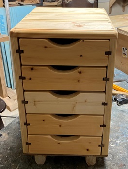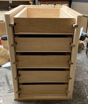 ガイドレールが前面にアクセントになって見える抽斗を作ってみた。 |